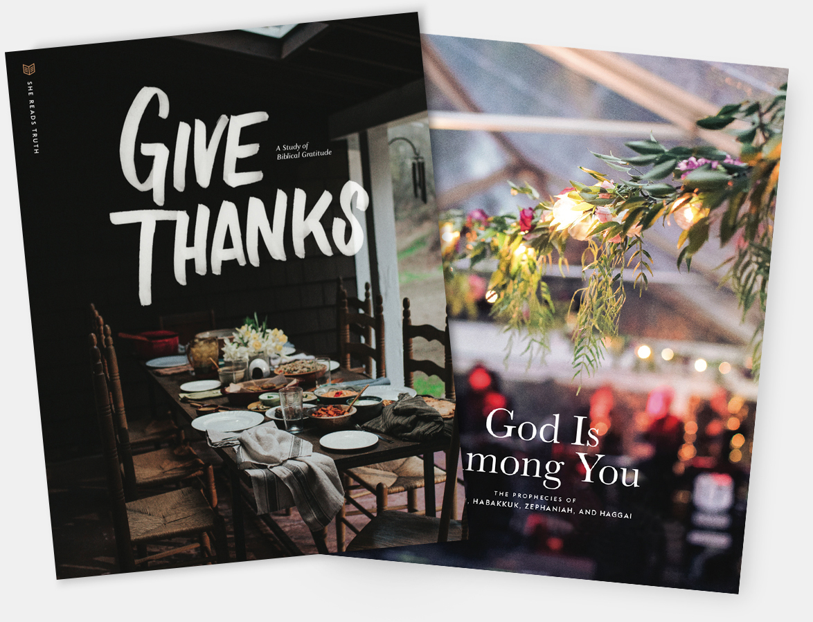 Our study books intentionally include the Scripture reading plan only—with just a few written guides for each section. Written responses to each day’s reading are found exclusively on SheReadsTruth.com and the She Reads Truth app. Join us there for further commentary and conversation.